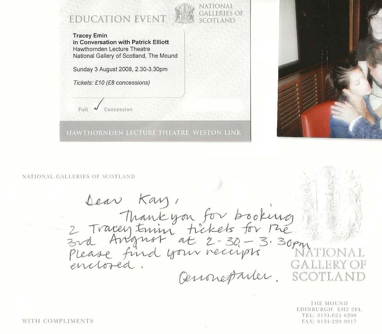 Ticket stub from “Tracey Emin In Conversation” event 2008